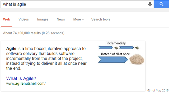 I can be pretty sure that almost all the times we hear the word Agile our mind relates that to the Agile software development process rather than the English word agile. Even Google thinks so. True enough that the semantic of the English word agile is they key to name the so called process as agile.