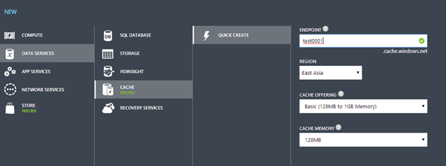 The cache offering is available in 3 different packages. Basic, Standard and Premium. The good side of these offerings is that each of them can be scaled with in a range. Once you provision a cache service you get the endpoint URL and security keys.