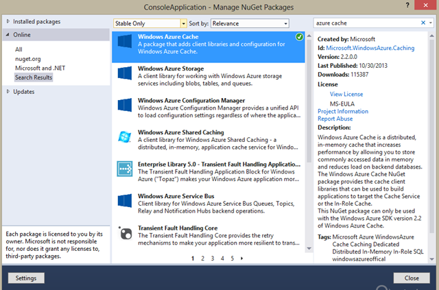 The programming model is simple and straight forward. We can use the DataCache class in Microsoft.ApplicationServer.Caching to access the cache. This is the same class we use in accessing the role based Windows Azure Cache as well.