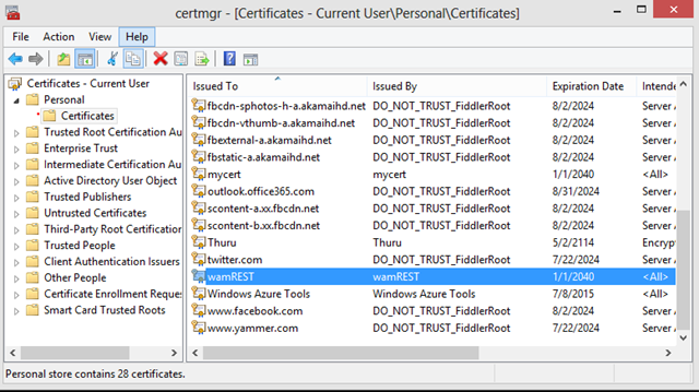 The above code tries to get the certificate from the Personal certification location, as the parameter “My” has been passed to the X509Store constructor.