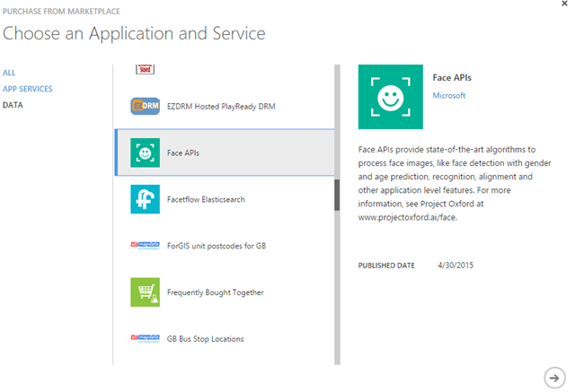 Once you are done with the purchase like any other service Face API is available in the Azure Marketplace section.