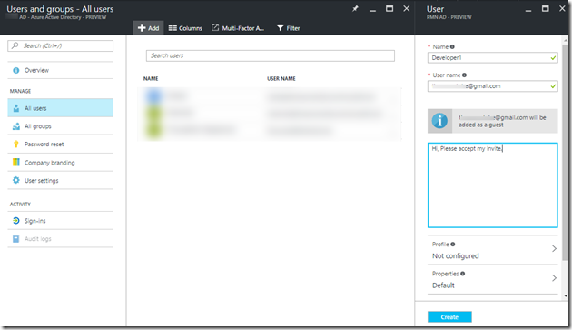 Bob gets access to Aventude Digital tenant as a Guest user. In this case Aventude Digital administrator Linda should invite Bob to her tenant, with the required RBAC permissions. Once Bob receives the invitation, he can access Aventude Digital directory. When Bob logs in using his own UPN (bob@massrover.onmicrosoft.com), he can see two directories in Azure – MassRover directory where he is a direct member and Aventude Digital directory where he’s a guest user.